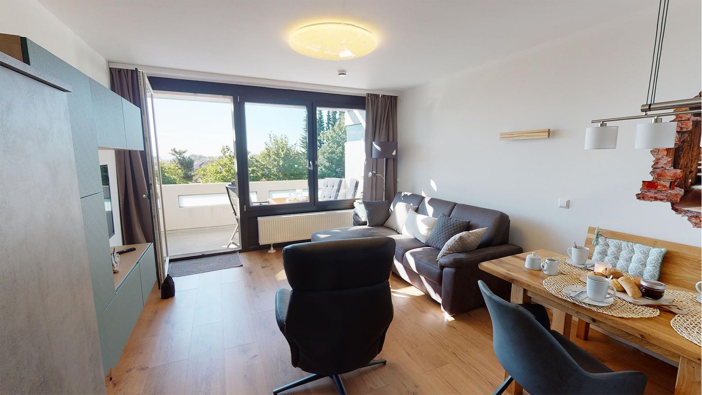 Das 55 m²-Apartment befindet sich im 2. OG eines Mehrparteienhauses in ruhiger Lage von Grömitz. Es ist für eine Belegung mit 4 Personen (3 Erwachsene + 1 Kind) ausgelegt. Privates Parken direkt an der Unterkunft. Durch die offene, modern ausgestattete Küche gelangen Sie in den gemütlichen Wohnbereich mit einer kleinen Essecke und einem einladenden Sofabereich. Ein Schlafzimmer verfügt über ein Einzelbett und ein Hochbett sowie einen Flachbildfernseher. Im zweiten Schlafzimmer erwartet Sie ein großes Doppelbett, ein Flachbildfernseher und ein Kleiderschrank. Das moderne Badezimmer mit Dusche und Sauna rundet die Wohnung ab (geringe Extragebühr durch Münzeinwurf, max. 2,00€ pro Saunagang). Genießen Sie die Sonne auf dem Balkon, der von einer Markise beschattet wird. Bequeme Balkonmöbel stehen für Sie bereit, und über die Baumkronen hinweg können Sie die Ostsee sehen! Zur Anlage gehört ein kostenfrei nutzbarer Tennisplatz.