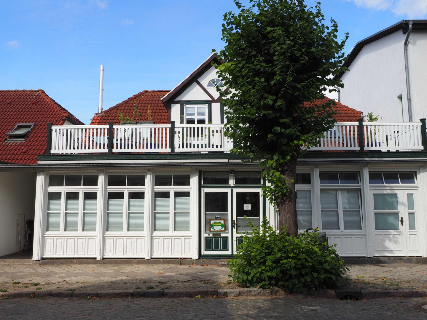 Willkommen in Ihrem persönlichen Rückzugsort mit Geschichte! Unser liebevoll restauriertes Kapitänshaus beherbergt ein ganz besonderes Ferienapartment im Erdgeschoss, das auf rund 40 m² mit viel Charme und Stil begeistert. Das Apartment verbindet auf harmonische Weise historisches Ambiente mit modernem Komfort. Die Einrichtung kombiniert sorgfältig ausgewählte Möbel aus der Gründerzeit mit zeitgemäßem Design – ein Ort, an dem Sie sich vom ersten Moment an wohlfühlen werden. Der einladende Eingangsbereich führt in den gemütlichen Wohnraum mit Sofa, Kabel-TV und kostenfreiem WLAN. Obwohl es sich bei dem Apartment um einen großzügigen Raum handelt, wurde dieser durch eine besondere Jugendstil-Trennwand – ein Originalstück aus einem mecklenburgischen Jagdschloss – stilvoll und funktional gegliedert. Eine kunstvolle Tiffany-Glaswand unterstreicht die elegante Raumaufteilung und trennt den Wohnbereich behutsam vom Schlafbereich. Dieser ist mit einem komfortablen Doppelbett sowie einem geräumigen Kleiderschrank ausgestattet. Angrenzend befindet sich eine praktische Küchenzeile mit Ceranfeld und Backofen sowie ein gemütlicher Essplatz für zwei Personen. Das moderne Badezimmer ist mit einer Dusche mit tiefem Einstieg ausgestattet und rundet den durchdachten Komfort dieser Ferienwohnung perfekt ab. Hinweis. Die Wohnung verfügt über keinen eigenen Stellplatz.