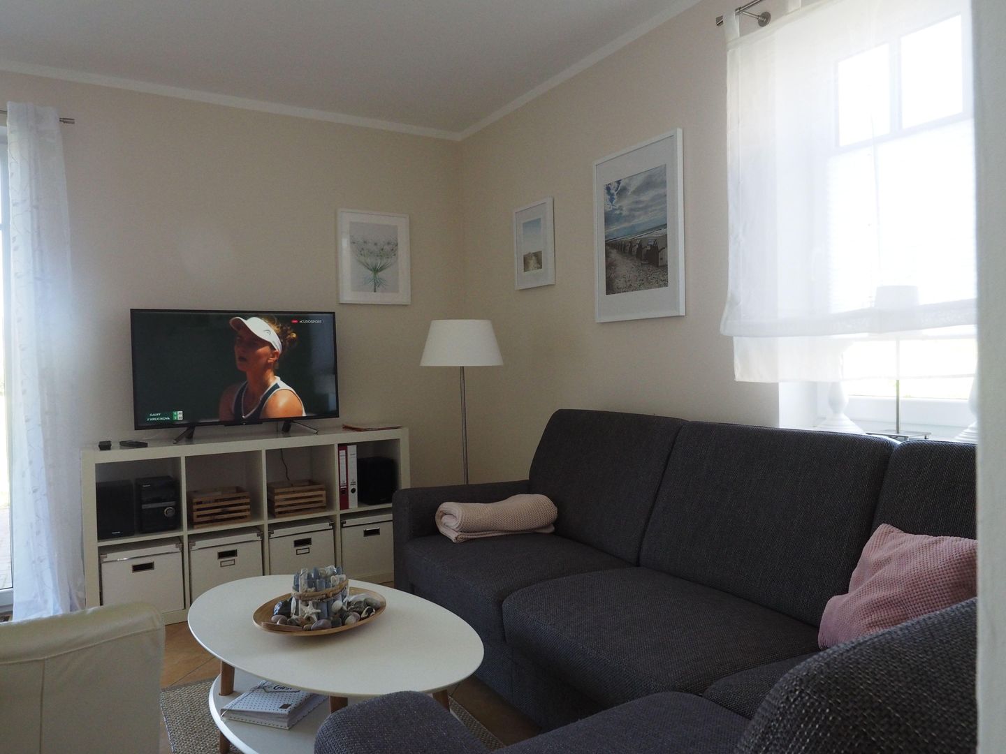 Genießen Sie unbeschwerte Urlaubstage in dieser charmanten, etwa 60 m² großen Ferienwohnung für bis zu 4 Personen – ideal für Paare, Familien oder Freunde. Die Wohnung liegt im Erdgeschoss auf der rechten Seite eines gepflegten Hauses in ruhiger Lage und bietet Ihnen viel Komfort, Gemütlichkeit und Platz zum Entspannen. Der offen gestaltete Wohn- und Küchenbereich lädt dazu ein, gemeinsam zu kochen, zu genießen und die Seele baumeln zu lassen. Die voll ausgestattete Küche gibt Ihnen die Freiheit, Ihre Kochideen ganz nach Wunsch umzusetzen. Der helle Wohnbereich mit gemütlichem Kaminofen sorgt besonders an kühleren Tagen oder am Abend für eine behagliche Atmosphäre. Die Wohnung verfügt über zwei Schlafzimmer: eines mit einem komfortablen Doppelbett, das zweite mit einem ausziehbaren Einzelbett, das sich bei Bedarf in ein Doppelbett verwandeln lässt – ideal für Familien oder Freunde, die gemeinsam reisen. Das moderne Badezimmer überzeugt mit einer geräumigen, ebenerdigen Dusche – perfekt für einen frischen Start in den Tag. WLAN über einen Vodafone Hotspot sowie ein eigener PKW-Stellplatz stehen Ihnen während des gesamten Aufenthalts zur Verfügung Ein echtes Highlight ist die großzügige Westterrasse mit eigenem Strandkorb und Gartenmöbeln – hier können Sie die Sonne am Nachmittag und Abend genießen, ein gutes Buch lesen oder einfach nur die Ruhe wirken lassen. Vor der Hauseingangstür befindet sich links unter der Treppe noch ein Abstellraum. .