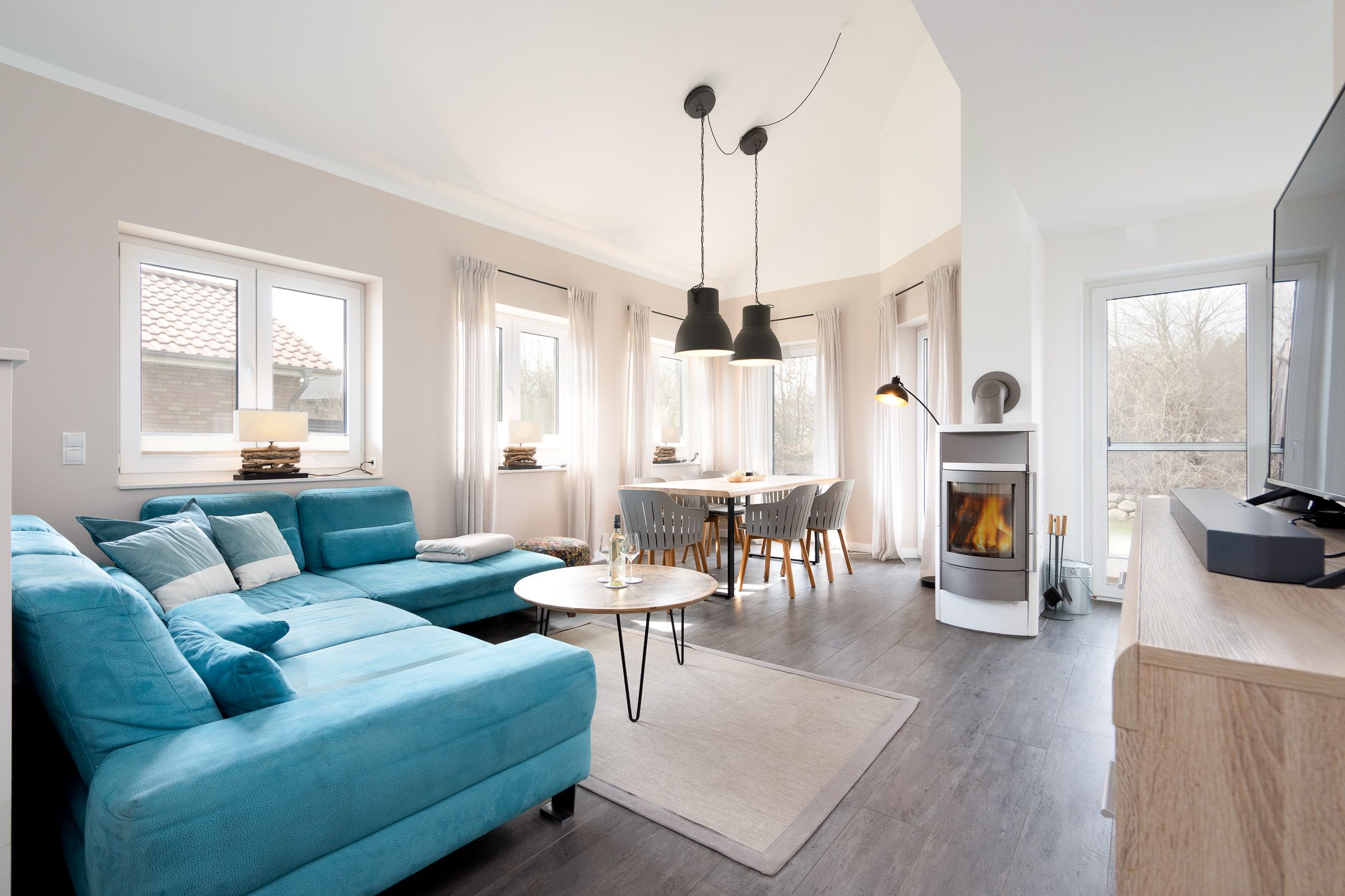 Nur wenige Gehminuten vom Strand entfernt befindet sich dieses ruhig gelegene Ferienhaus. Auf zwei Etagen mit insgesamt 110 m² bietet es Platz für 8 Personen und Ihren Hund. Ihnen steht direkt am Haus ein PKW-Stellplatz zur Verfügung. Im Erdgeschoss finden Sie einen gemütlichen Wohnbereich, einen hellen Essbereich, eine moderne, schicke Küche, zwei Schlafzimmer mit Doppelbett sowie ein Duschbad mit WC. Im Obergeschoss gibt es ein weiteres Schlafzimmer mit Doppelbett, ein lichtdurchflutetes Badezimmer mit Badewanne, eine offene Galerie mit zwei komfortablen Einzelbetten und eine Sauna. Der große Garten mit der möblierten Terrasse, dem Strandkorb (zwischen April und Oktober) und dem Grill lädt Sie ein, sonnige Stunden im Freien zu verbringen. Außerdem steht ein Gartenhaus zur Mitbenutzung bereit.
