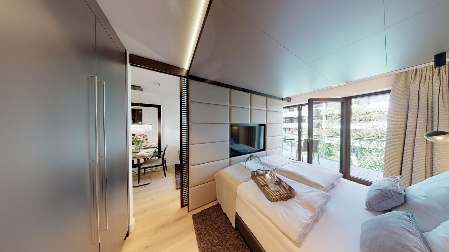 Nur wenige Gehminuten vom Strand entfernt befindet sich das Luxusapartment 1.14 im 1. Obergeschoss des "White Pearl", das auf 44 m² Platz für 2 Personen bietet – auch Ihr Hund ist willkommen! Sie erwartet eine voll ausgestattete Küchenzeile mit einer Essecke im Wohnbereich. Der offene Wohn- und Essbereich wird durch zwei gemütliche Sessel abgerundet. Das separate Schlafzimmer verfügt über ein Boxspring-Doppelbett, das durch Lamellen-Schiebetüren abgetrennt werden kann. Darüber hinaus gibt es ein luxuriöses Badezimmer mit Dusche. Ein besonderes Highlight des Apartments ist der möblierte, nach Westen ausgerichtete Balkon, der zu entspannten Stunden an der frischen Meeresluft einlädt! Zur Wohnung gehört außerdem ein Außenstellplatz. Erleben Sie eine virtuelle Reise durch das Apartment mit dem 360°-Rundgang!