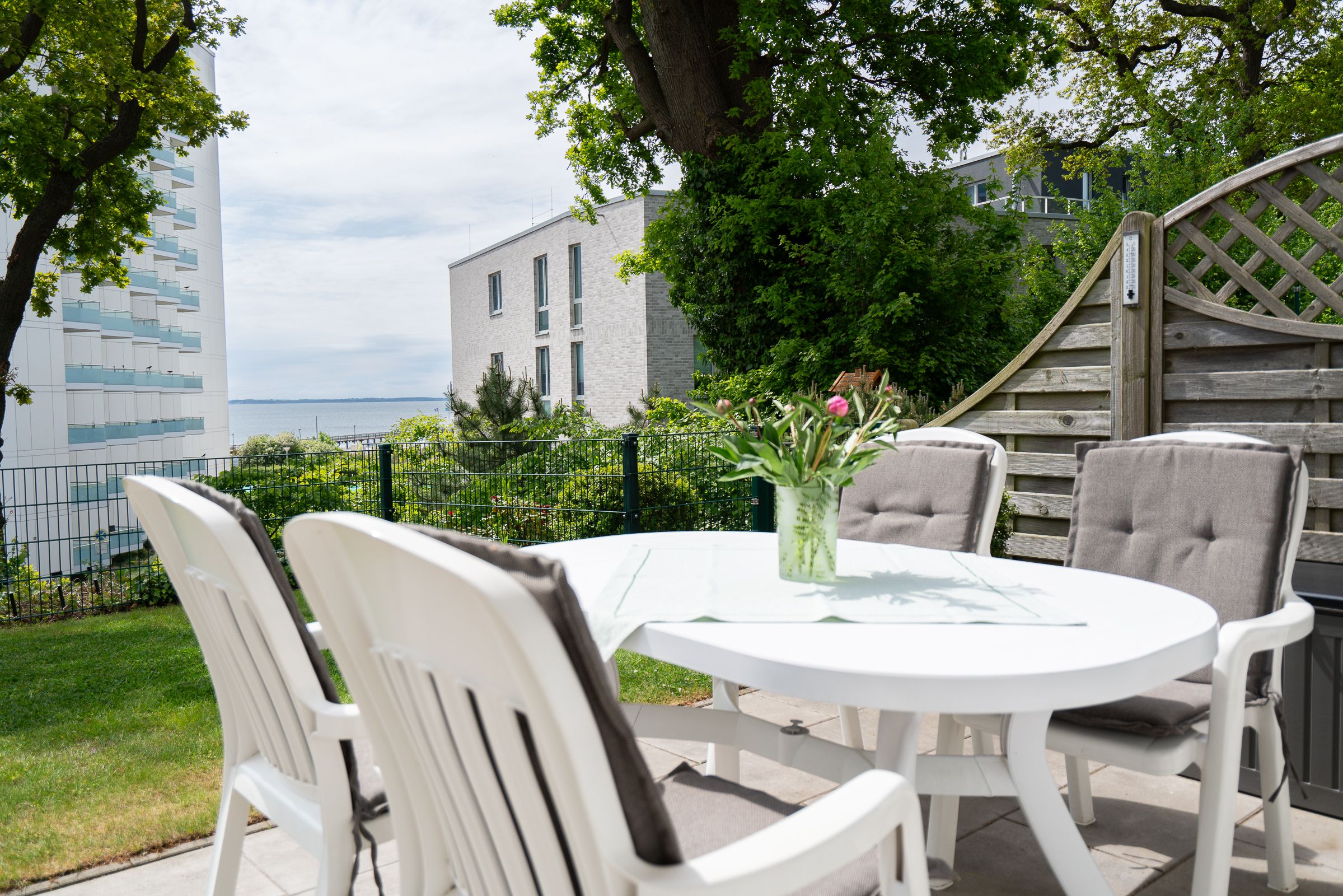Willkommen in Ihrer perfekten Auszeit am Meer – die Wohnung 3 im beliebten Gästehaus Windrose lädt Sie zu einem unvergesslichen Urlaub an der Ostsee ein! Im Erdgeschoss gelegen und nur wenige Schritte vom Strand entfernt, erwartet Sie auf 54 m² ein komfortables Zuhause für bis zu vier Personen, das keine Wünsche offenlässt. Genießen Sie sonnige Stunden auf der großzügigen Südterrasse – ausgestattet mit Gartenmöbeln und eigenem Strandkorb (von Ostern bis Oktober), wo Sie bei Meeresrauschen den Tag beginnen oder entspannt ausklingen lassen können. Der helle Wohnraum mit großer Fensterfront, bequemer Couch, Essbereich und stilvoller Einrichtung schafft eine einladende Atmosphäre zum Wohlfühlen. Die Küche ist vollständig ausgestattet und bietet alles, was Sie zum Kochen und Genießen brauchen. Das moderne Badezimmer überzeugt mit frischer Ausstattung, und die beiden Schlafzimmer – eines mit gemütlichem Doppelbett, das andere mit zwei Einzelbetten – garantieren erholsamen Schlaf für die ganze Familie. Besonders praktisch: Direkt am Haus steht ein privater Parkplatz zur Verfügung. Ihre Fahrräder können sicher in der Garage untergebracht werden, und für längere Aufenthalte stehen Ihnen Waschmaschine und Trockner bei den Eigentümern auf Anfrage kostenfrei zur Verfügung. Das absolute Highlight: Über einen privaten Zugang direkt vom Grundstück erreichen Sie in nur wenigen Schritten Strand und Promenade von Pelzerhaken – maritimes Flair, frische Seeluft und pure Erholung inklusive. Diese Wohnung bietet alles, was einen traumhaften Ostseeurlaub ausmacht. Optional haben Sie auch die Möglichkeit mit 22 Personen das Apartmenthaus zu bewohnen. Hierfür buchen Sie zusätzlich die Wohnungen - Windrose 1, 2 und 4-6.