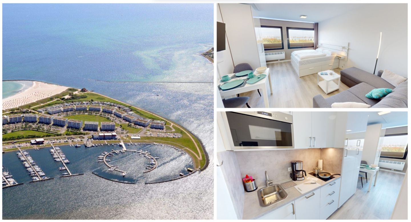 Willkommen in dieser gemütlichen und einladenden 25 m² großen 1-Zimmer-Ferienwohnung, die mit ihrer perfekten Lage direkt am wunderschönen, kilometerlangen Südstrand zu einem entspannten Urlaub einlädt. Im 2. Obergeschoss gelegen, können Sie von hier aus den atemberaubenden Blick auf den malerischen Yachthafen genießen – ein idealer Ort, um die Seele baumeln zu lassen und die maritime Atmosphäre auf sich wirken zu lassen. Diese charmante Wohnung ist die perfekte Unterkunft für zwei Erwachsene und ein Kind, die eine ruhige und gleichzeitig zentrale Lage suchen. Die Ferienwohnung wurde mit viel Liebe zum Detail und einem Gefühl für Gemütlichkeit eingerichtet. Der großzügige Wohnraum lädt zum Verweilen ein und bietet sowohl einen kleinen Essbereich als auch ein bequemes Schlaf-Sofa, auf dem Sie nach einem erlebnisreichen Tag entspannen können. Das Doppelbett sorgt für erholsame Nächte und lässt Sie frisch und erholt in den nächsten Tag starten. Die gut ausgestattete Küchenzeile bietet Ihnen alles, was Sie für die Zubereitung kleiner Mahlzeiten oder eines gemütlichen Frühstücks benötigen – ideal, um den Tag entspannt zu beginnen oder gemeinsam zu kochen. Abgerundet wird die Wohnung durch ein modernes und gepflegtes Duschbad, das Ihnen den nötigen Komfort für den gesamten Aufenthalt bietet. Genießen Sie die wunderschöne Umgebung und die Nähe zum Meer – diese Ferienwohnung ist der ideale Ort, um die Seele baumeln zu lassen und den Alltag hinter sich zu lassen. Ein privater PKW-Stellplatz steht Ihnen selbstverständlich zur Verfügung, um Ihren Aufenthalt noch komfortabler zu gestalten.