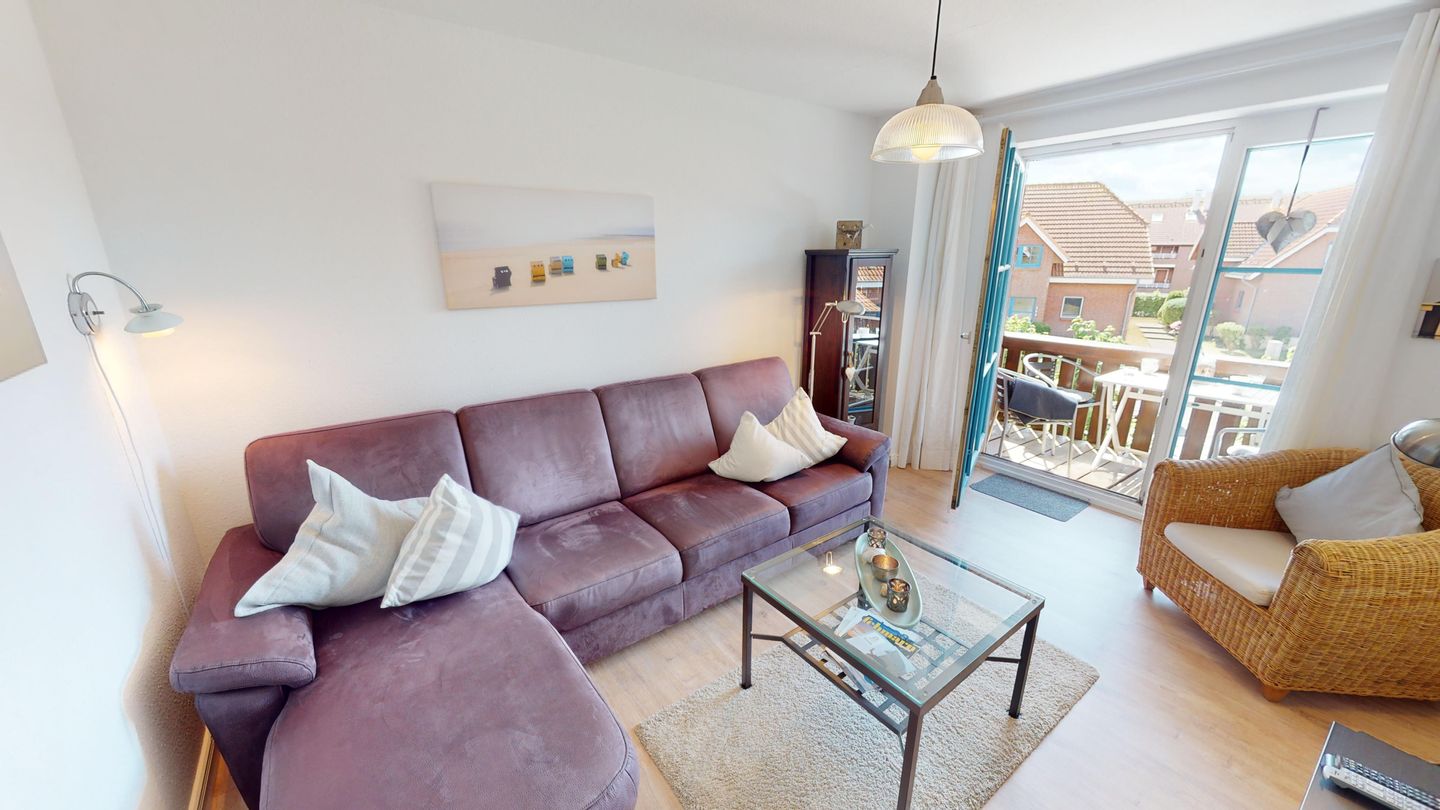 Genießen Sie Ihren Urlaub nur wenige Schritte von der glitzernden Ostsee entfernt! Unsere liebevoll eingerichtete, 48 m² große Ferienwohnung in Lemkenhafen auf Fehmarn ist der perfekte Rückzugsort für Paare oder Familien – ideal für bis zu 3 Erwachsene und 1 Kind. Die Wohnung liegt im Obergeschoss des Hauses Nr. 14 in der Ferienanlage Lemkenhafen (5 Stufen vor der Haustür), die insgesamt vier Wohnungen umfasst. Freuen Sie sich auf ein helles, gemütliches Wohnzimmer mit einem komfortablen Sofa, das sich ideal für entspannte Abende und als zusätzliche Schlafmöglichkeit für einen Erwachsenen und ein Kind eignet. Die moderne Küche mit angrenzendem Essbereich lädt zu gemeinsamen Mahlzeiten ein, während das separate Schlafzimmer mit gemütlichem Doppelbett erholsame Nächte verspricht. Ein modernes Duschbad rundet das Wohlfühlambiente ab. Ein besonderes Highlight: der sonnige, möblierte Balkon – perfekt für ein Frühstück an der frischen Ostseeluft oder einen entspannten Ausklang des Tages mit einem Glas Wein. Weitere Annehmlichkeiten wie ein privater Parkplatz direkt am Haus sowie ein Fahrradständer für Ihre mitgebrachten Räder machen Ihren Aufenthalt rundum komfortabel.