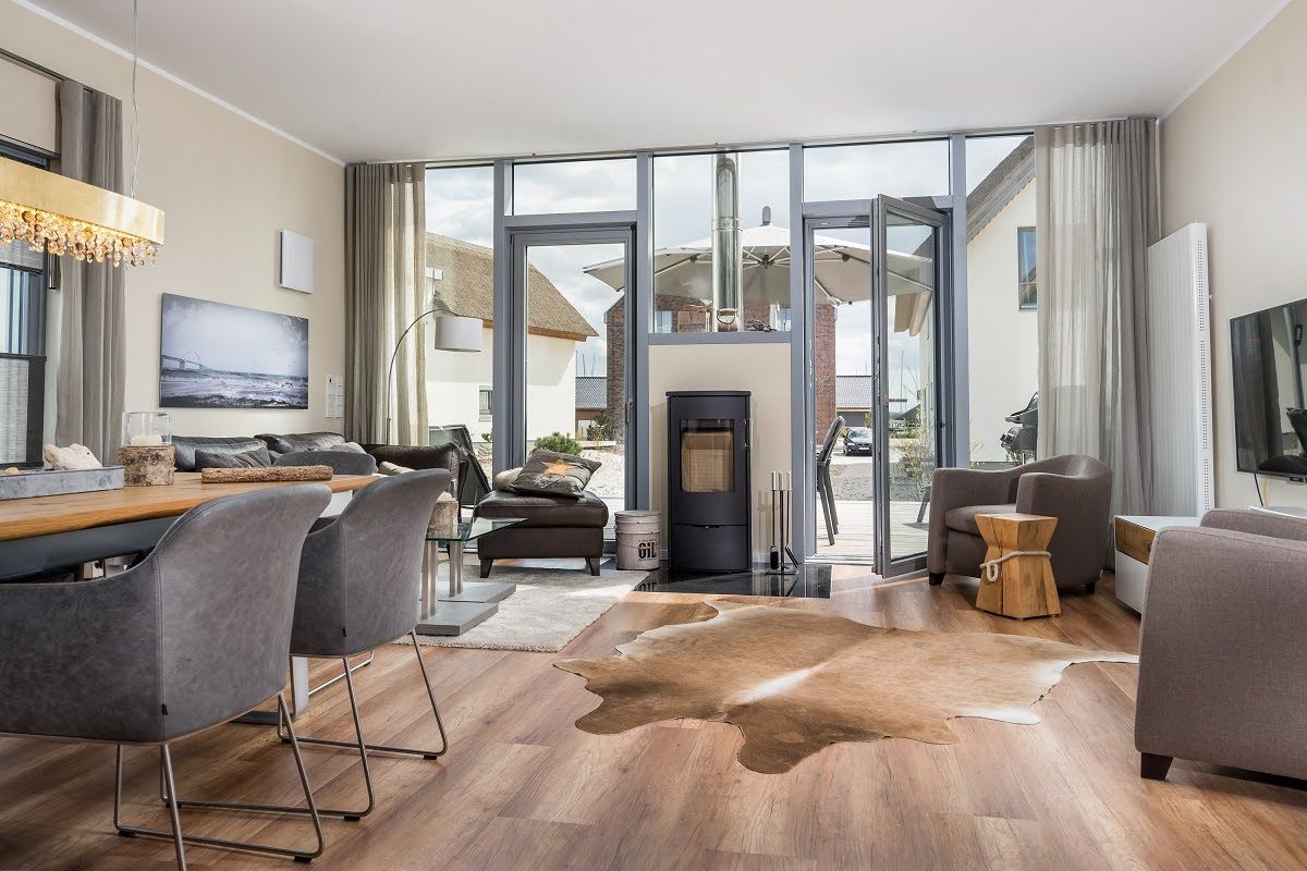 Dieses luxuriöse, reetgedeckte Haus befindet sich in exklusiver Lage mitten auf dem Steinwarder, dem Sahnestück Heiligenhafens. Strand, Marina und Seebrücke sind nur wenige Minuten entfernt. Das 136 m² Haus ist für eine Belegung mit 6 Personen ausgelegt - auch Ihr Hund ist willkommen. Privater Parkplatz am Haus. Freuen Sie sich auf einen großen, lichtdurchfluteten Wohn-Essbereich mit einem Kaminofen für gemütliche Stunden. Die separate, voll ausgestattete Küche lässt keine Wünsche offen – von der Nespresso-Maschine bis hin zum Induktionsherd ist alles vorhanden. Im Obergeschoss befinden sich drei Schlafzimmer: eines mit einem großen Doppelbett, ein weiteres mit einem Doppelbett und das dritte mit zwei Einzelbetten. Das moderne Badezimmer mit Badewanne und separater Regendusche befindet sich ebenfalls im Obergeschoss. Ein Gäste-WC befindet sich im Erdgeschoss. In den Sommermonaten erwartet Sie die sonnige, möblierte Terrasse mit Grill und Sonnenschirm. Eine kleine Terrasse befindet sich vor dem Haus, von wo aus man den Sonnenuntergang über dem Binnensee bestaunen kann. Ein weiteres Highlight des Hauses ist die eigene Sauna für vier Personen mit anschließender Dusche. In den Sommermonaten steht Ihnen ein Strandkorb am Strand zur Verfügung. Der Strandkorb befindet sich am Hundestrand direkt neben der Seebrücke (15. Mai - 15. September). Für die Kleinsten stehen Reisebett, Rausfallschutz und Treppengitter bereit. Zudem kann ein Bollerwagen kostenfrei genutzt werden. Dieses exklusive Haus wurde vom DTV mit 5 Sternen klassifiziert und ist sehr hochwertig sowie mit viel Liebe eingerichtet. Erkunden Sie das Apartment bei einer virtuellen 360°-Tour https://my.matterport.com/models/7GH3SjChA6p?section=media
