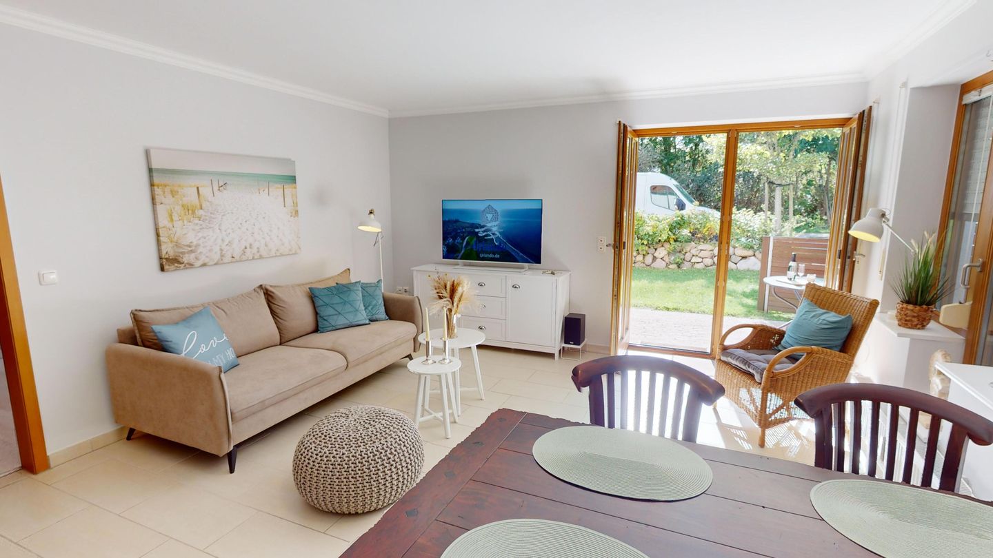 Willkommen in Ihrer traumhaften, ebenerdigen Ferienwohnung "Sea Breeze" , wo Gemütlichkeit und moderner Komfort auf Sie warten. Dank der Außenrollos und Plissees an allen Fenstern genießen Sie erholsame Nächte und einen angenehmen Schlaf. Ein heller, einladender Flur mit praktischer Garderobe heißt Sie bei Ihrer Ankunft willkommen. Die Wohnung verfügt über zwei gemütliche Schlafzimmer mit komfortablen Doppelbetten. Eines der Schlafzimmer ist zusätzlich mit einem TV und einem stilvollen Arbeitstisch ausgestattet – ideal für entspannte Arbeitsstunden oder kreative Momente. Das moderne Bad ist mit einer großzügigen Dusche, einer Waschmaschine und einem eleganten Spiegel ausgestattet und bietet Ihnen alle Annehmlichkeiten für Ihren Aufenthalt. Der offene Wohnbereich mit der voll ausgestatteten Küche ist perfekt für gesellige Kochabende und gemeinsame Mahlzeiten. Neben allen wichtigen Küchenutensilien steht Ihnen auch ein Wok zur Verfügung, der sich hervorragend für die Zubereitung asiatischer Gerichte eignet. Zur Unterhaltung bieten wir zudem bereitgestellte Spiele und eine Mini-Musikanlage von Teufel mit Bluetooth, damit Sie Ihre eigene Musik über ein hochwertiges Soundsystem genießen können. Auf der sonnigen Südterrasse, nur wenige Schritte vom Strand entfernt, können Sie wunderbar entspannen und die Seele baumeln lassen. Ein fester Außenstellplatz steht Ihnen zur Verfügung, ebenso wie ein gemeinschaftlicher Fahrradschuppen, der Platz für Ihre Fahrräder bietet. Erleben Sie unvergessliche Urlaubstage in einem stilvollen und gemütlichen Ambiente!