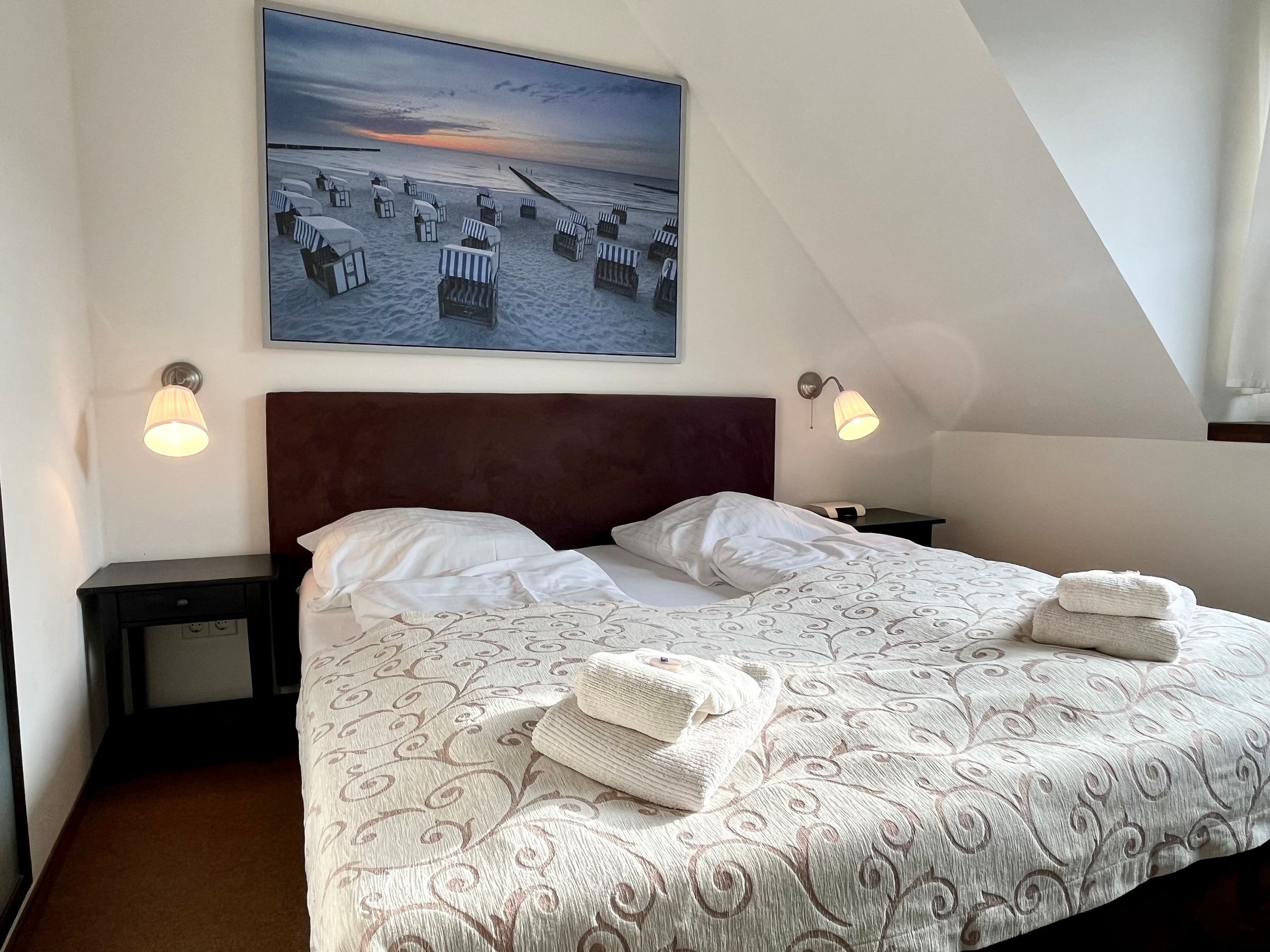 Die gemütliche 2-Zimmer-Wohnung im 2. Stock bietet auf 40 m² Platz für 2 Personen. Der Wohnbereich ist mit einer komfortablen Sitzecke ausgestattet und verfügt über eine offene Küchenzeile mit Tresen sowie ein 2-Platten-Ceranfeld. Das separate Schlafzimmer sorgt für erholsame Nächte. Das moderne Bad ist mit einer Dusche ausgestattet. Auf dem möblierten Balkon können Sie entspannen und die frische Ostseeluft genießen.