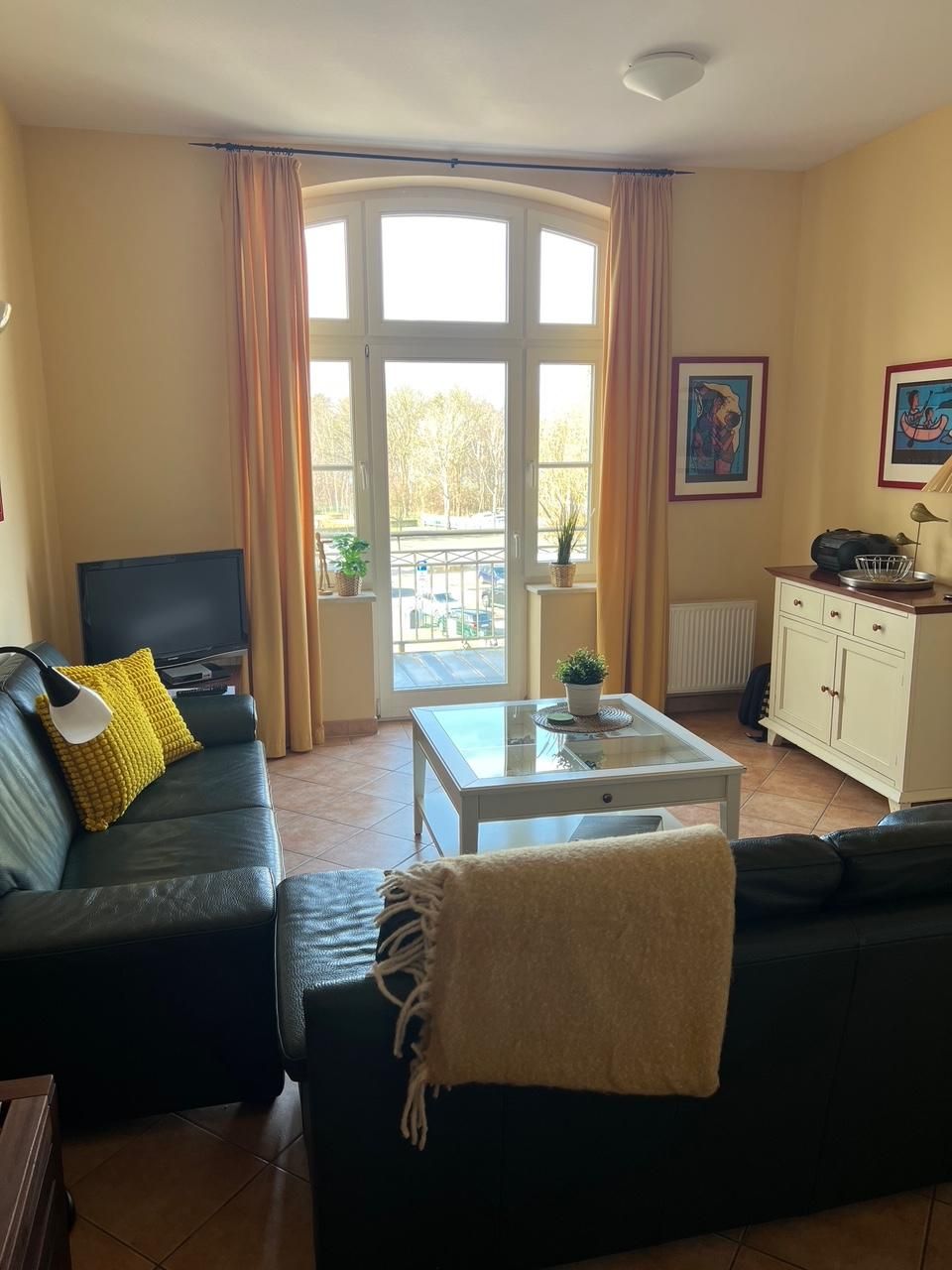 Diese charmante, 65 m² große Ferienwohnung vereint Weite, Komfort und eine besondere Wohnatmosphäre. Durch ihre hohen Räume und die Lage im 2. Obergeschoss (bauartbedingt entsprechend der 3. Etage) wirkt sie besonders hell und einladend – ein Ort zum Ankommen und Wohlfühlen. Die Wohnung verfügt über zwei Schlafzimmer, beide ausgestattet mit großen, komfortablen Doppelbetten, die erholsame Nächte garantieren. Vor dem Schlafzimmer I lädt ein Balkon zu entspannten Momenten unter freiem Himmel ein – ideal für ein kleines Sonnenbad oder eine Pause zwischendurch. Im großzügigen Wohnzimmer können Sie es sich auf dem gemütlichen Ecksofa bequem machen oder vom zweiten Balkon aus den Blick über die Umgebung genießen. Die komplett ausgestattete Küchenzeile bietet Ihnen alles, was Sie für die Zubereitung leckerer Gerichte benötigen. Ein besonderes Highlight ist das separate Esszimmer in der oberen Ebene, das der Wohnung eine einzigartige Aufteilung und viel Großzügigkeit verleiht. Hier können Sie gemeinsam essen, spielen, den Tag planen oder den Abend gemütlich ausklingen lassen. Hinweis: Bitte beachten Sie, dass im März Malerarbeiten im Treppenhaus vorgenommen werden. Diese Arbeiten dauern ca. 3 Wochen an. Der Zugang zur Wohnung ist dauerhaft gewährleistet.