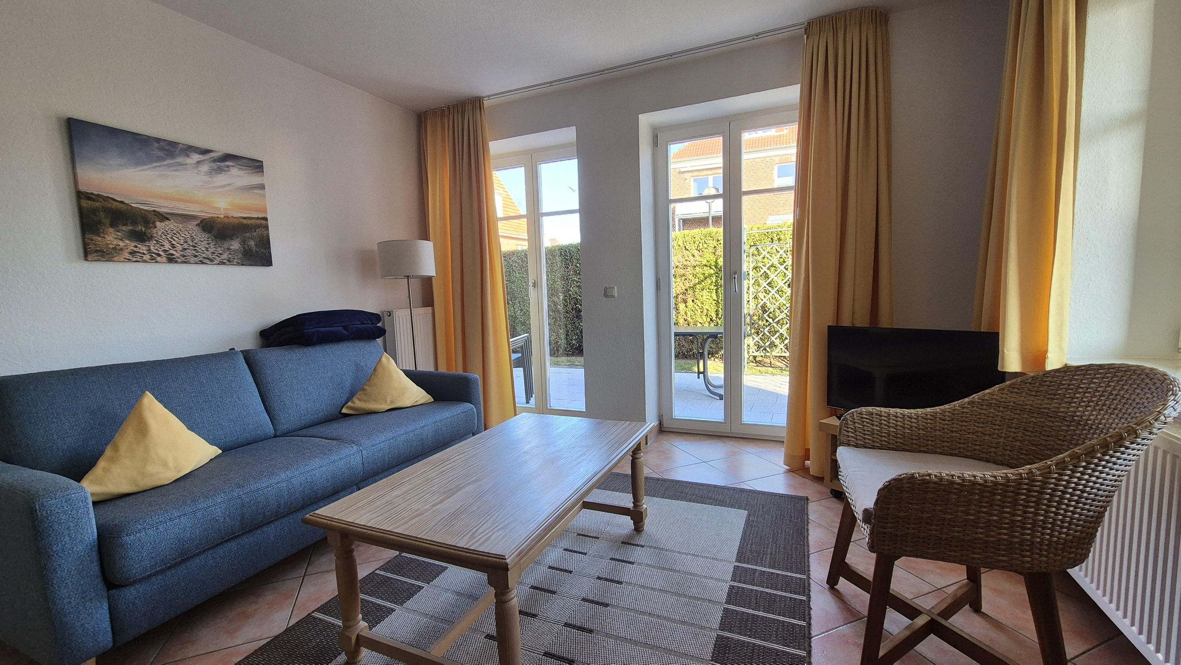 Die Villa Smidt Fewo 2 bietet Ihnen auf 58 m² Wohnfläche ein komfortables Feriendomizil im Erdgeschoss, das speziell auf die Bedürfnisse von Paaren, kleinen Familien sowie Erholungssuchenden und Aktivurlaubern zugeschnitten ist. Die Unterkunft befindet sich im beliebten Ostseebad Warnemünde, nur etwa 200 Meter vom Strand und der Ostsee entfernt. Das helle Apartment verfügt über zwei Zimmer, die funktional und geschmackvoll eingerichtet sind. Im separaten Schlafzimmer mit Fußbodenheizung finden Sie bequeme Betten für erholsamen Schlaf, während im großzügigen Wohnbereich ein gemütliches Sofa weitere Schlafmöglichkeiten bietet. Insgesamt stehen vier Schlafmöglichkeiten zur Verfügung, sodass sowohl Paare als auch Familien mit Kindern oder Babys Platz finden – Letztere sind hier ausdrücklich willkommen. Zum entspannten Tagesausklang lädt der Wohnbereich mit TV sowie kostenfreiem WLAN ein. Ein besonderes Highlight dieser Ferienwohnung ist die Terrasse in Südlage mit Gartenmöbeln und Blick ins Grüne. Genießen Sie hier ruhige Stunden im Freien oder lassen Sie den Tag entspannt ausklingen. Ein kostenloser Privatparkplatz direkt am Haus erleichtert Ihnen die An- und Abreise und bietet einen sicheren Stellplatz während Ihres Aufenthalts an der Ostsee.