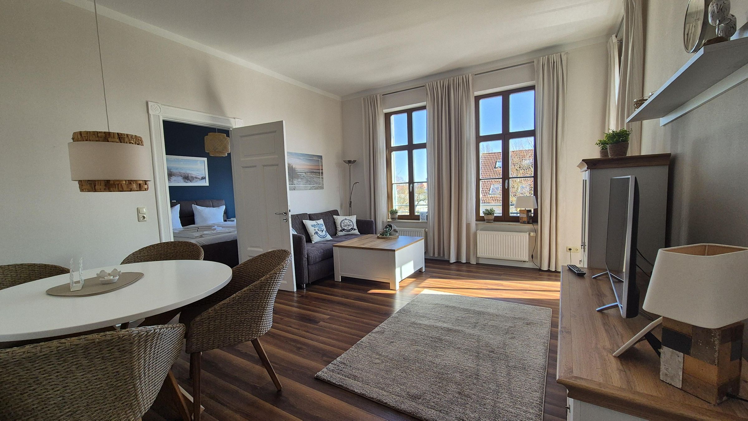 Willkommen in der charmanten Ferienwohnung „Kaiserliches Postamt – Fewo 5“, wo moderner Komfort auf historischen Charme trifft! Auf 63 m² erwartet Sie ein liebevoll eingerichtetes Zuhause für bis zu 3 Personen – ideal für Paare oder kleine Familien, die eine entspannte Auszeit an der Ostsee genießen möchten. Die Wohnung befindet sich im 1. Obergeschoss des traditionsreichen Hauses „Kaiserliches Postamt“ und überzeugt mit einem hellen, großzügigen Wohnbereich. Hier laden eine gemütliche Sitzecke, ein komfortables Schlafsofa und ein moderner Flachbildfernseher zu entspannten Stunden ein. Der Esstisch bietet Platz für gemeinsame Mahlzeiten und gesellige Abende. In der separaten, voll ausgestatteten Küche mit Geschirrspülmaschine, Kaffeemaschine und Ceran-Kochfeld macht das Kochen richtig Freude – perfekt für alle, die auch im Urlaub gern kulinarisch kreativ sind. Das Schlafzimmer mit bequemem Doppelbett sorgt für erholsame Nächte, während das moderne Badezimmer mit großzügiger Dusche Wellness-Feeling verspricht. Ein Tiefgaragenstellplatz steht Ihnen selbstverständlich kostenfrei zur Verfügung – so beginnt Ihr Urlaub ganz stressfrei.