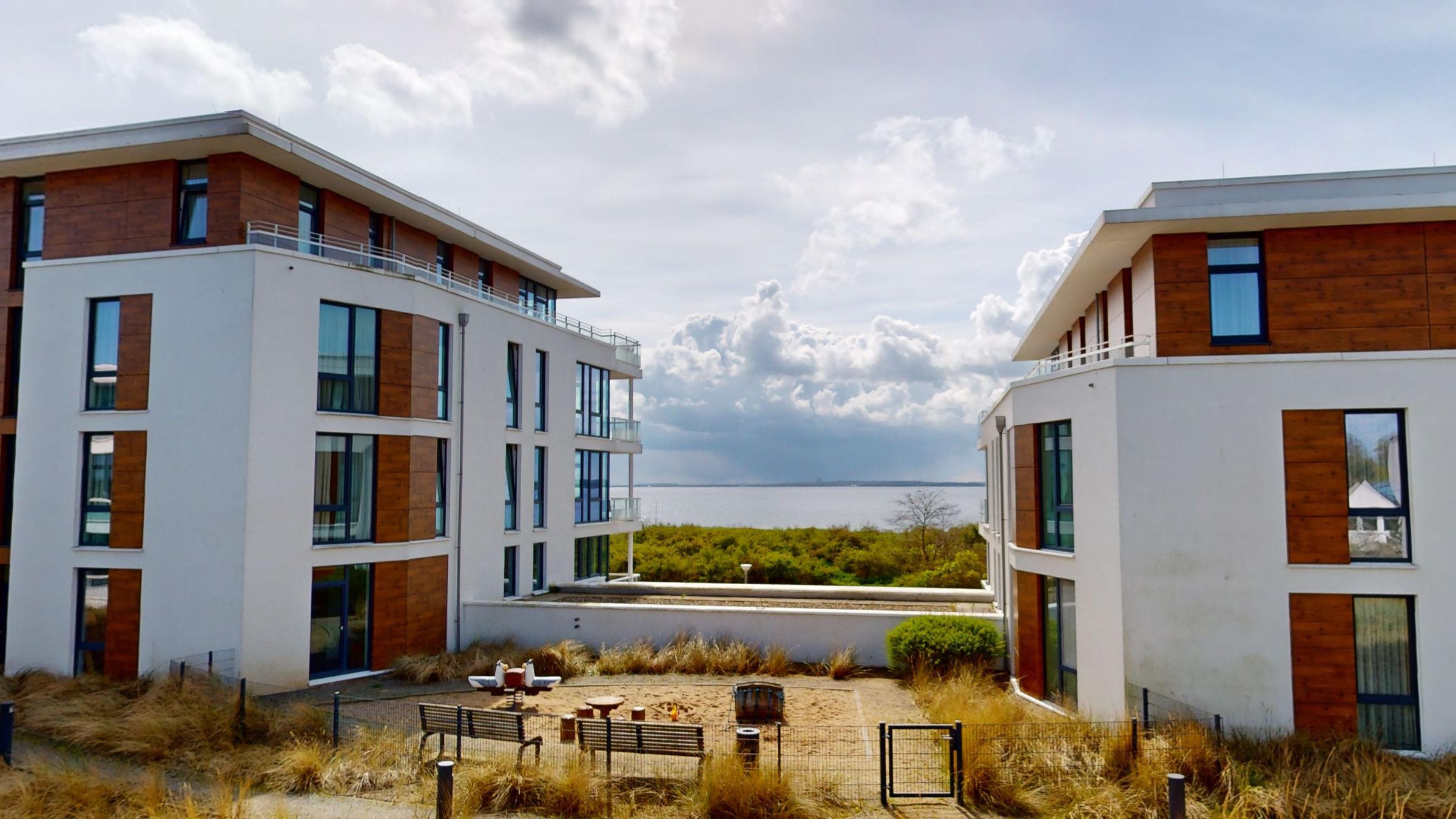Diese gemütliche 2-Zimmer-Ferienwohnung mit einem Schlafzimmer kann bis zu 4 Gäste beherbergen. Das Apartment ist allergikerfreundlich. Sie befindet sich in der 2. Reihe der Ferienanlage Südkap in Haus C und liegt im 2. OG. Von Ihrem Balkon aus haben Sie einen schönen Meerblick zwischen den beiden vorderen Gebäuden hindurch. Die 59 m² große Wohnung ist modern und hell eingerichtet. Der einladende Wohn- und Essbereich grenzt an eine voll ausgestattete Küchenzeile. Das Sofa lässt sich auch als Schlafcouch für zwei Personen nutzen. Das Schlafzimmer ist mit einem Boxspring-Doppelbett ausgestattet. Im Badezimmer erwartet Sie eine Badewanne und eine separate Dusche. Auf dem überdachten Balkon erwartet Sie ein Tisch mit vier Stühlen, Sonnenliegen sowie ein Strandkorb für gemütliche Auszeiten mit Blick auf die Ostsee. Parken Sie Ihr Auto auf dem wohnungseigenen Tiefgaragenstellplatz. Mit dem Aufzug oder über die Treppe gelangen Sie zum Apartment.