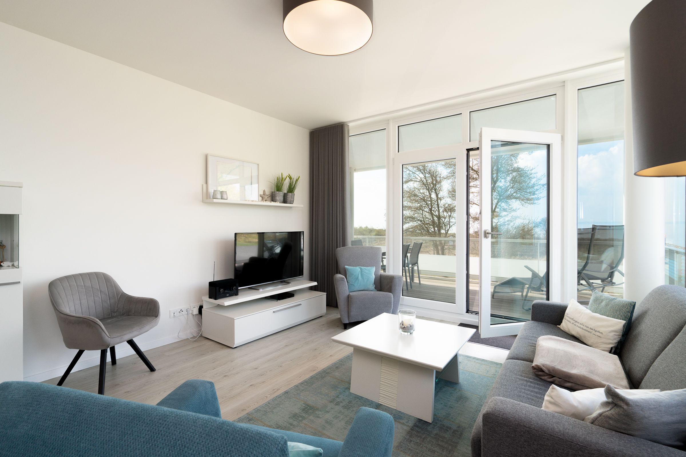 Willkommen in Ihrem Urlaubstraum! Diese herrliche Wohnung im ersten Obergeschoss ist 83 qm groß und hat drei Zimmer - zwei Schlafzimmer, jeweils mit Boxspring-Doppelbett, ein Wohnzimmer mit Küchenzeile und Schlafsofa. Sie ist für eine Belegung mit bis zu fünf Personen gut geeignet. Auch Hunde sind in dieser Wohnung herzlich willkommen (gegen Aufpreis)! Zwei Bäder mit je einer Dusche und je einer Badewanne bieten großen Komfort. Die frische Ostseeluft können Sie von Ihrem Balkon mit direktem Blick auf die Ostsee genießen.