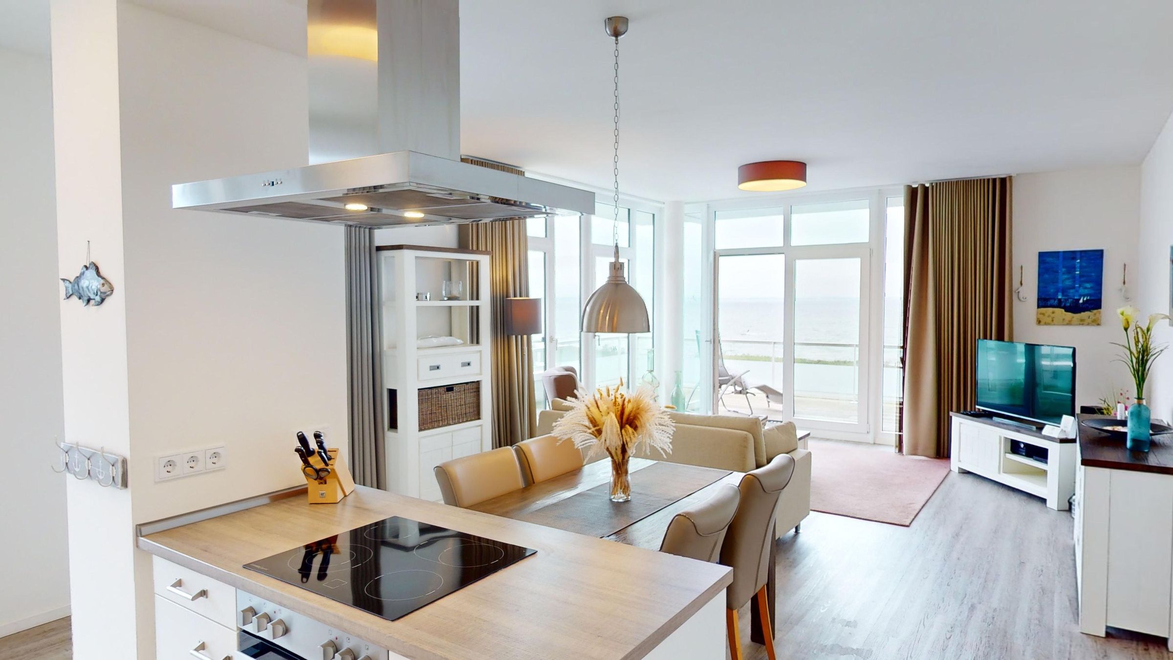 Die Penthouse-Wohnung G-08 bietet auf 80 m² besten Komfort für den Urlaub zu zweit. Von der Dachterrasse aus überschauen Sie die Lübecker Bucht von Travemünde bis Neustadt. Das Penthouse-Apartment erstreckt sich über ein großes Wohnzimmer mit Ess- und Küchenbereich, ein Schlafzimmer mit Doppelbett und einem komfortablen Bad mit Badewanne und Dusche. Zur Wohnung gehört ein Stellplatz in der Tiefgarage.