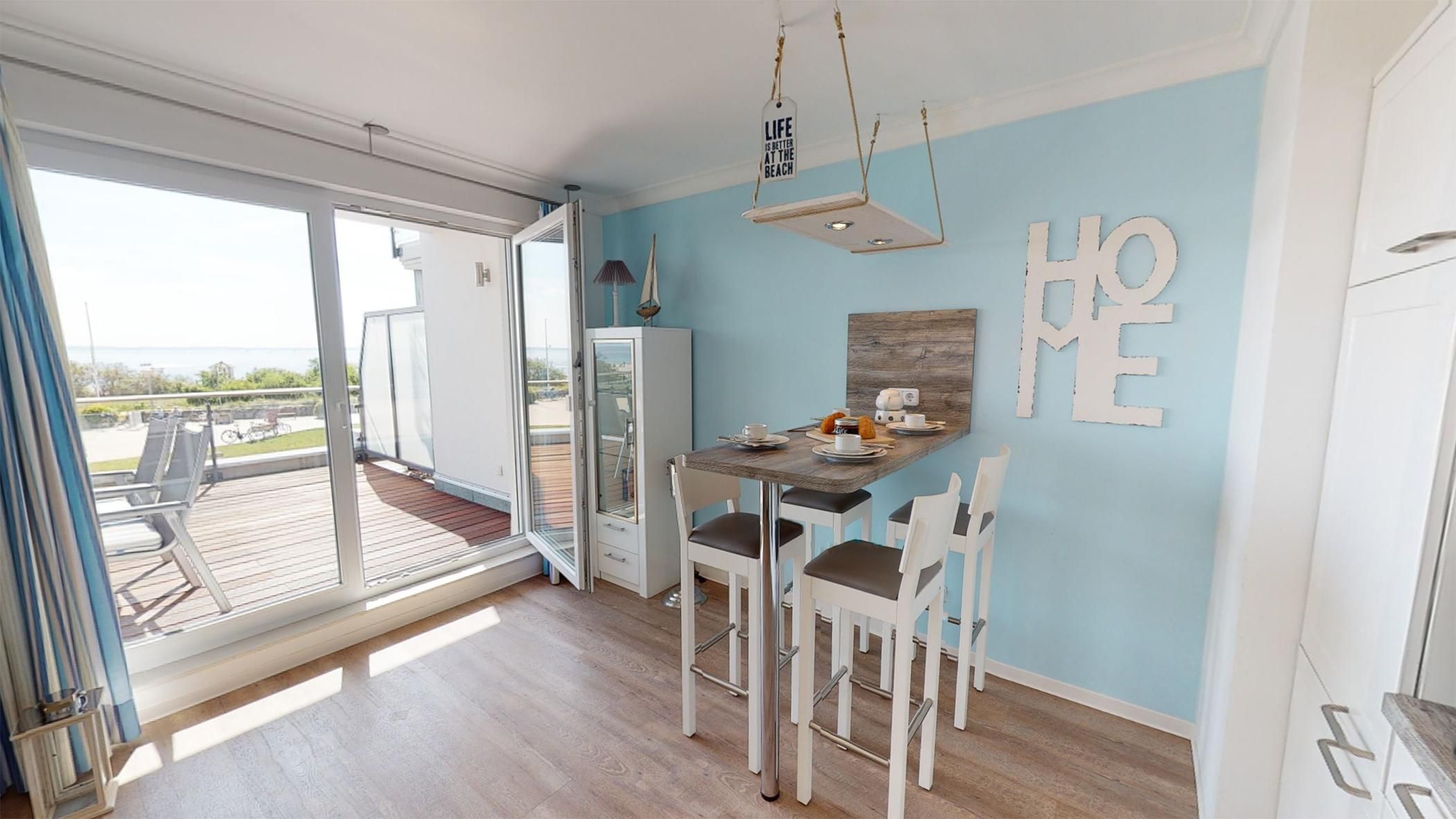 Das 53 m²-Apartment "Meerblick 6a" befindet sich im 1. OG der Villa Meeresrauschen und ist für einen Urlaub mit 4 Personen geeignet; auch ein Hund ist willkommen! Das moderne Bad mit Dusche, das Schlafzimmer mit Doppelbett, der helle und offene Wohn-/Essbereich mit einem gemütlichen Sofa mit Schlaffunktion und atemberaubendem Meerblick sowie die voll ausgestattete Küchenzeile werden Sie begeistern! Ein Highlight ist der möblierte, halb überdachte Balkon - genießen Sie den Osteeblick und Sonne den ganzen Tag! Parken Sie Ihr Auto auf dem wohnungseigenen Außenstellplatz Nr. 6a. Über den Hauseingang Nr. 14 gelangen Sie mit dem Aufzug oder über die Treppe in den 1. Stock. Es steht Ihnen ein gemeinschaftlicher, abschließbarer Fahrradraum zur Verfügung. Der Strand ist nur wenige Schritte von Ihrer Ferienunterkunft entfernt! Nur die Promenade trennt Sie und Ihre Füße vom feinen Sand und der Seebrücke.